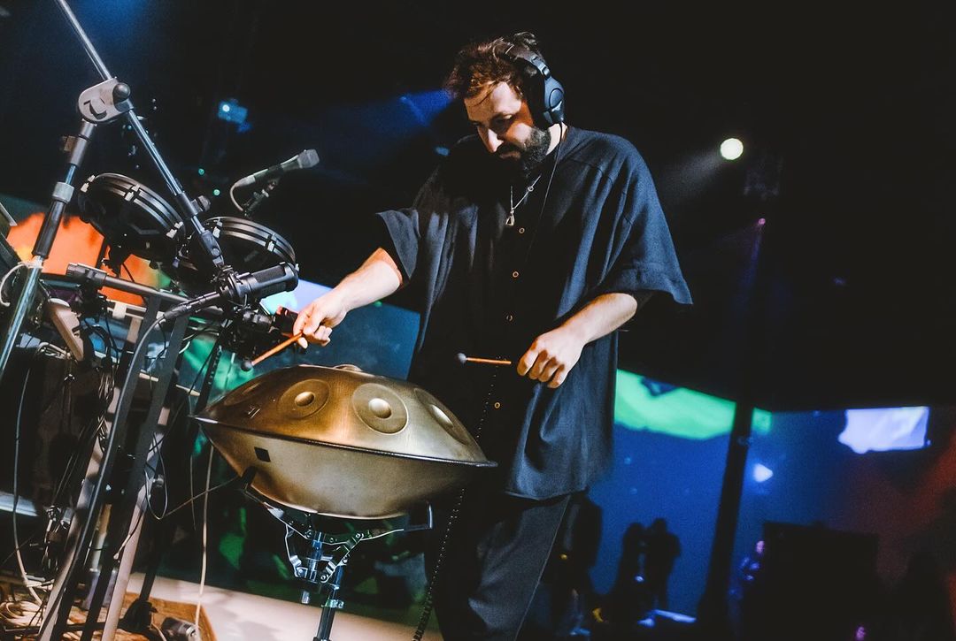 A multisensory AV performance that translates Andean cosmovision into electronic music, movement, visual and light. The Guirotron — a mythical energy-organism, part guiro, part cosmic transmitter — lands in the Andes to awaken dormant rhythms in humanity. Available in single projection, 180°, 360° spaces, and full dome formats.